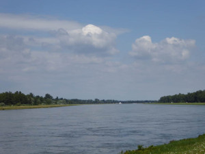 Once this was done, I pottered through some housing estates, briefly wondering to myself why there was so much post-war housing around this part of Germany. Obviously the answer being in the question….the war. Then it was on through some farmland, some rough hewn tracks and finally back down onto the river. It was seriously hot work, but I was feeling fairly good to get back down to the Rhine and see Speyer in the distance;